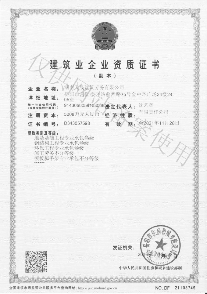 公司2018年新增環(huán)保工程專業(yè)承包三級資質